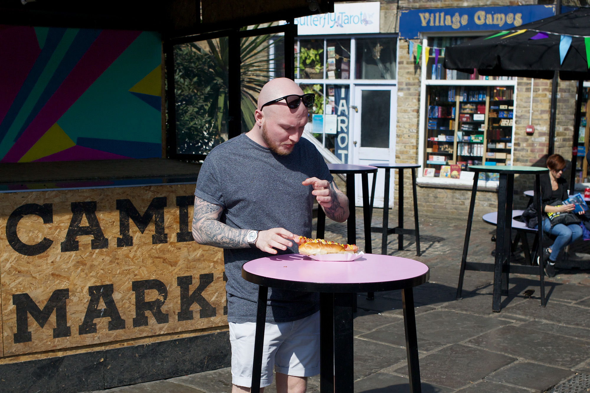 I’ve always liked the idea of capturing a street scene in which buildings, cars and people happen to share the same colour. Likewise, I’m attracted to groups of people in the same coloured outfit, but where each person is asserting an individual personality by stance and gesture.