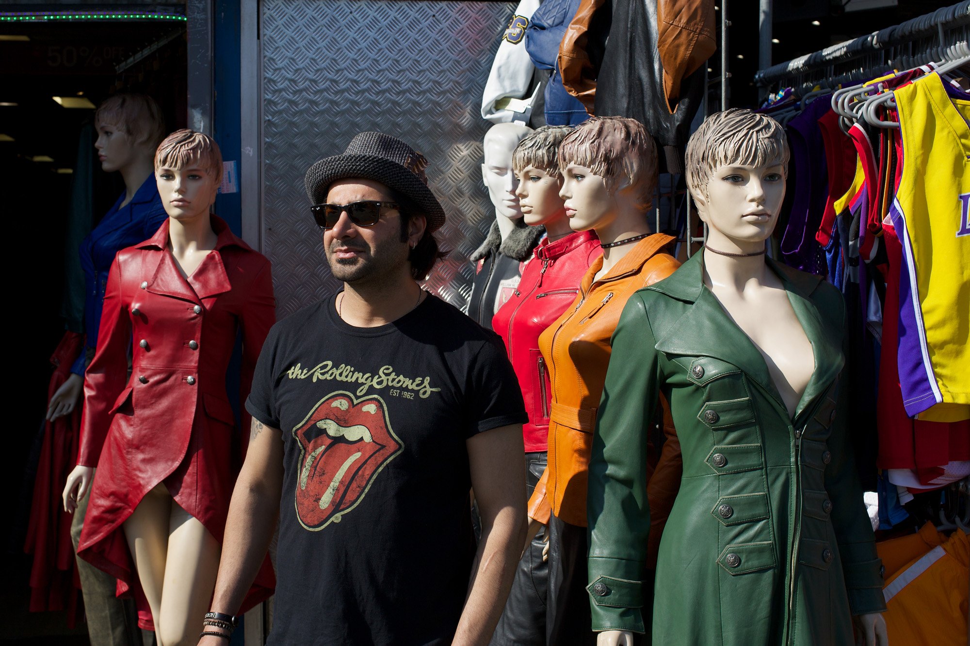 I like the colour in my featured image (above), where the storekeeper in Camden Market, London, has cleverly selected an harmonious range of leather coats and displays them proudly on the sidewalk. You could argue that the brilliant yellow of the sports vests on the right tends to upset the colour scheme, but I think they enliven it and make the photo less “tasteful.” After all, the Rolling Stones’ “distressed tongue” tee-shirt indicates taste in a big way, although it may not be to everyone’s taste.
