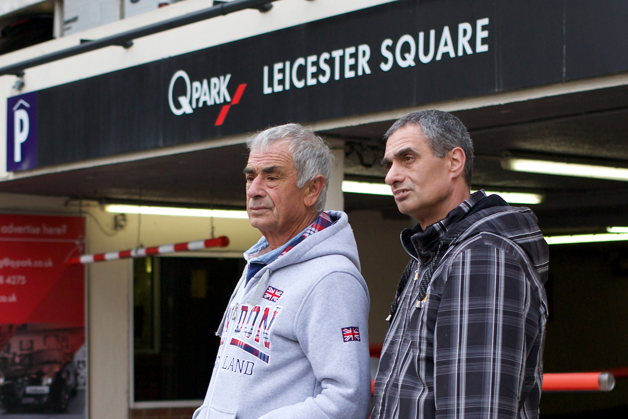 My favourite shot from my walk around Leicester Square’s big hole is this one (below) of the man on the gate. His job is to supervise the constant flow of trucks entering and leaving the site, bringing liquid concrete for the foundations of the new hotel complex.