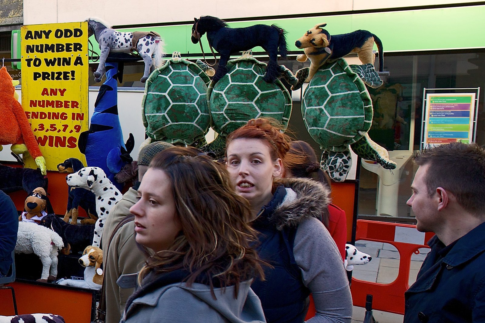The featured image (above) is about as hardcore as I get. After all, there’s nothing more sinister than cuddly toys — unless you include clowns. The shot is in-your-face, the subject’s dismay at being photographed contrasts nicely with the total lack of concern shown by the toys, all of whom — along with the passers-by — are looking elsewhere. It’s a brutal image, but in a cuddly way.