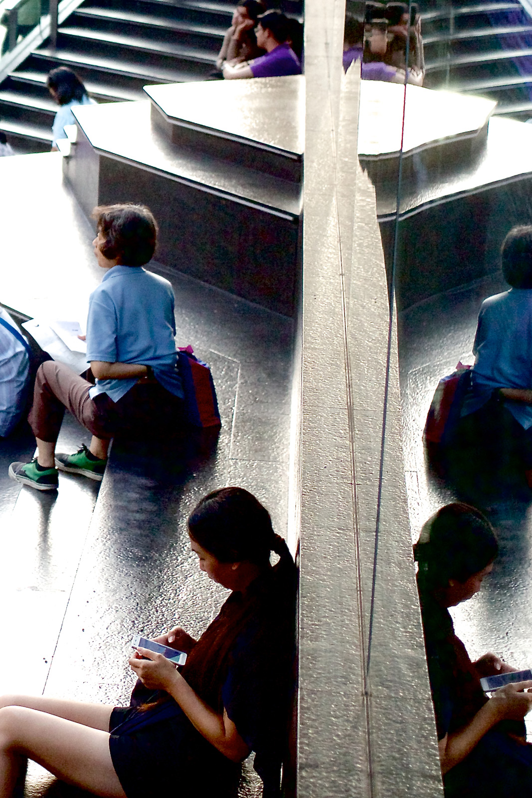 I was thinking about the potential of using light and shade, together with reflections, when I took the following shot. It’s essentially an abstract composition, but with an important human element.